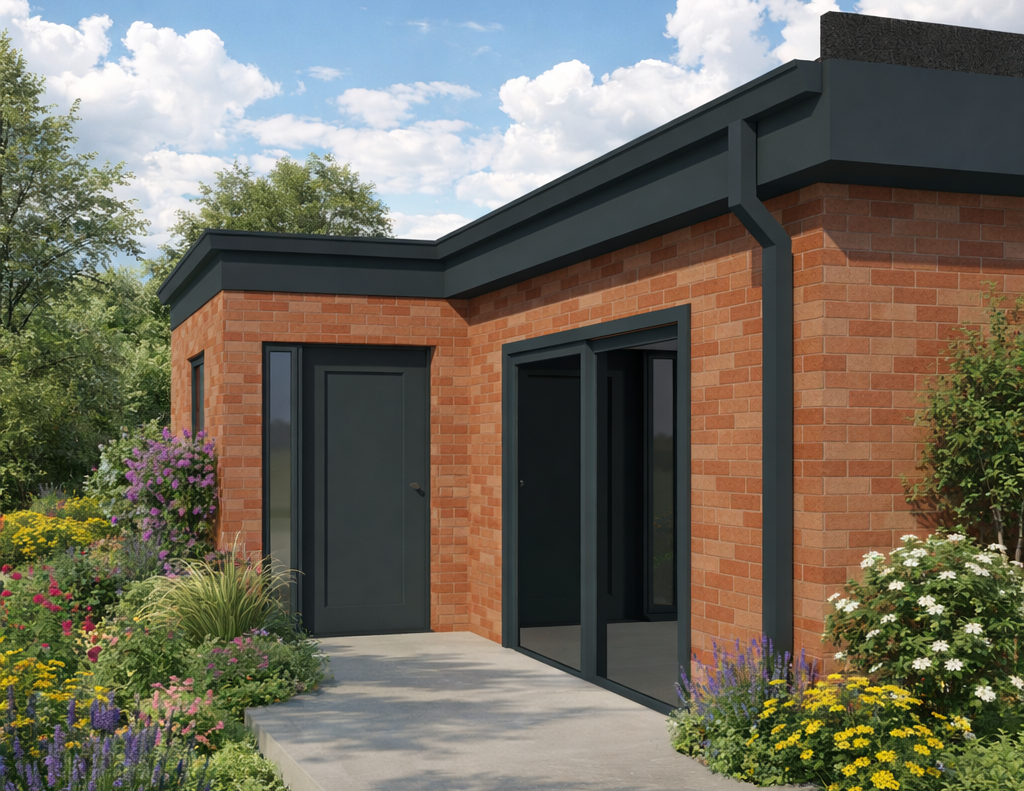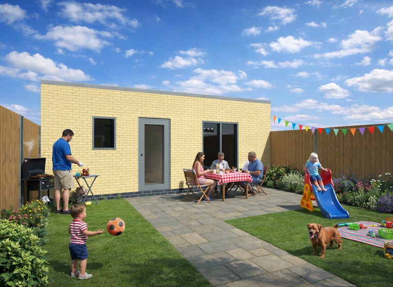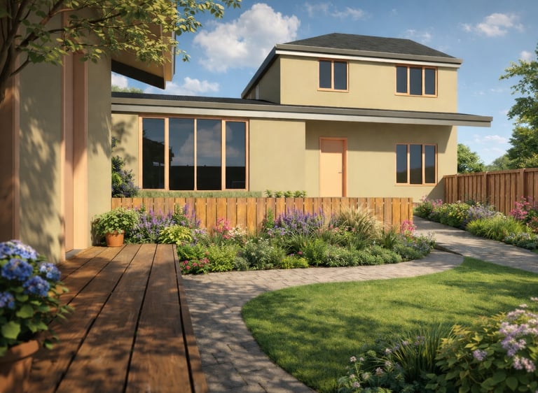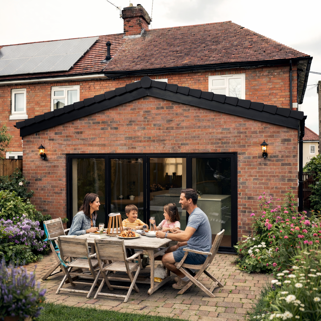 A sloping site can add its unique character to a simple medium-sized extension and its surrounding area.