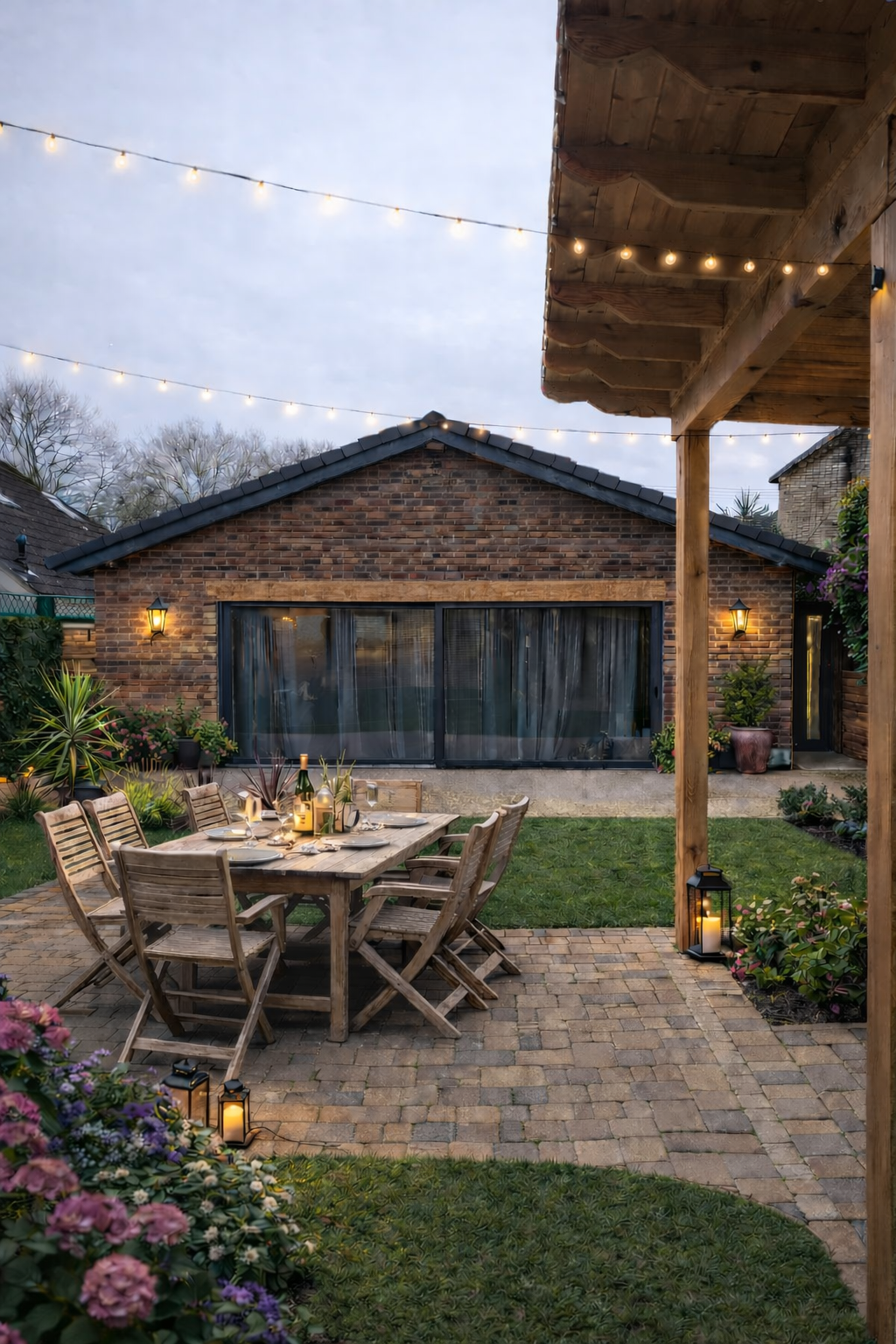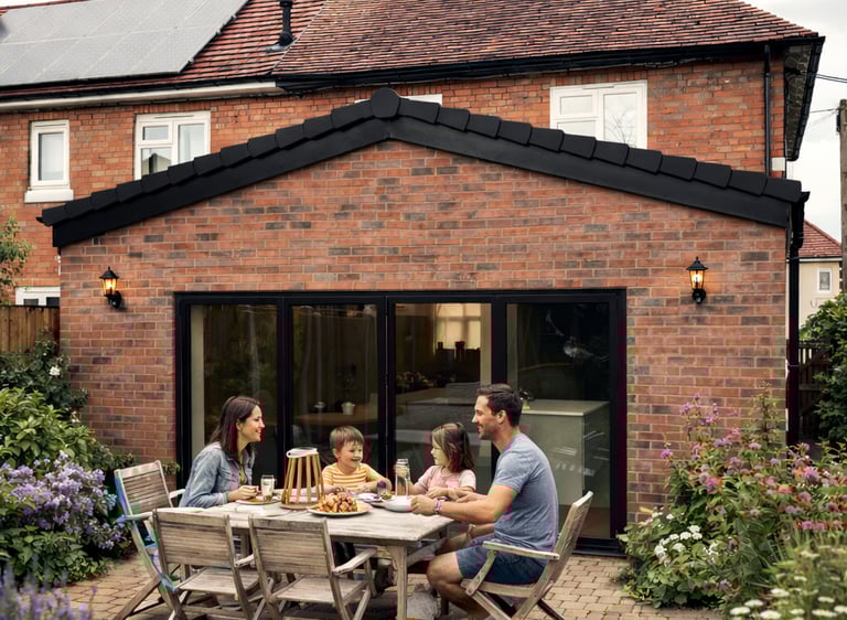 Large sliding doors combining outside and inside space provide more space when you have guests and other celebrations planned.