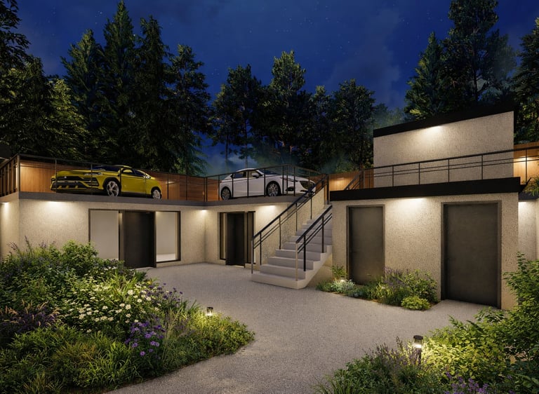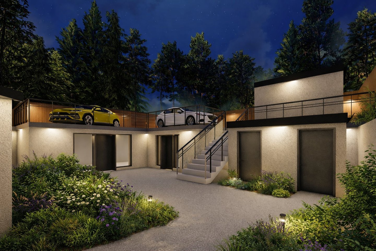 Providing more parking space with useful utilization of the space underneath the parking lot.