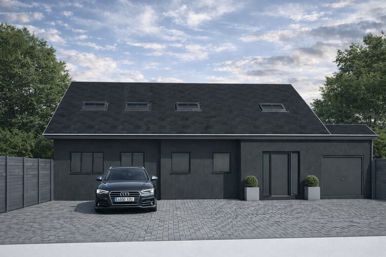 Large conversion that is in keeping with character of bungalow from the front but have a full joy of two storey house.